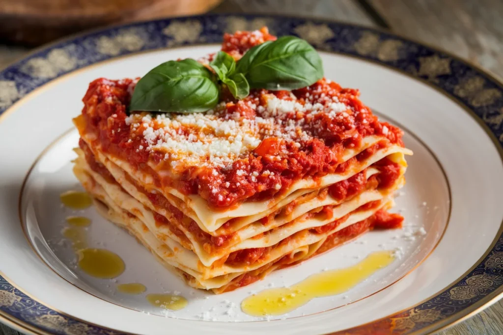 4. Layer ingredients in a baking dish: sauce, noodles, cheese mixture, and repeat.