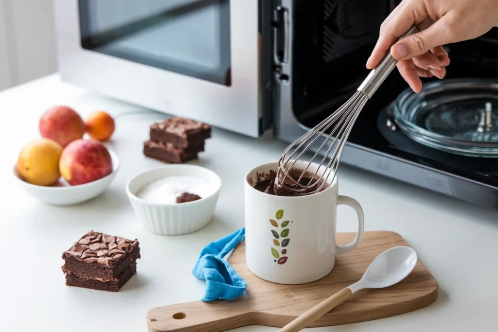 - Instructions: Mix all ingredients in a microwave-safe mug and microwave on high for 1-2 minutes, or until the brownie is cooked through. Serve warm, topped with a scoop of ice cream if desired.