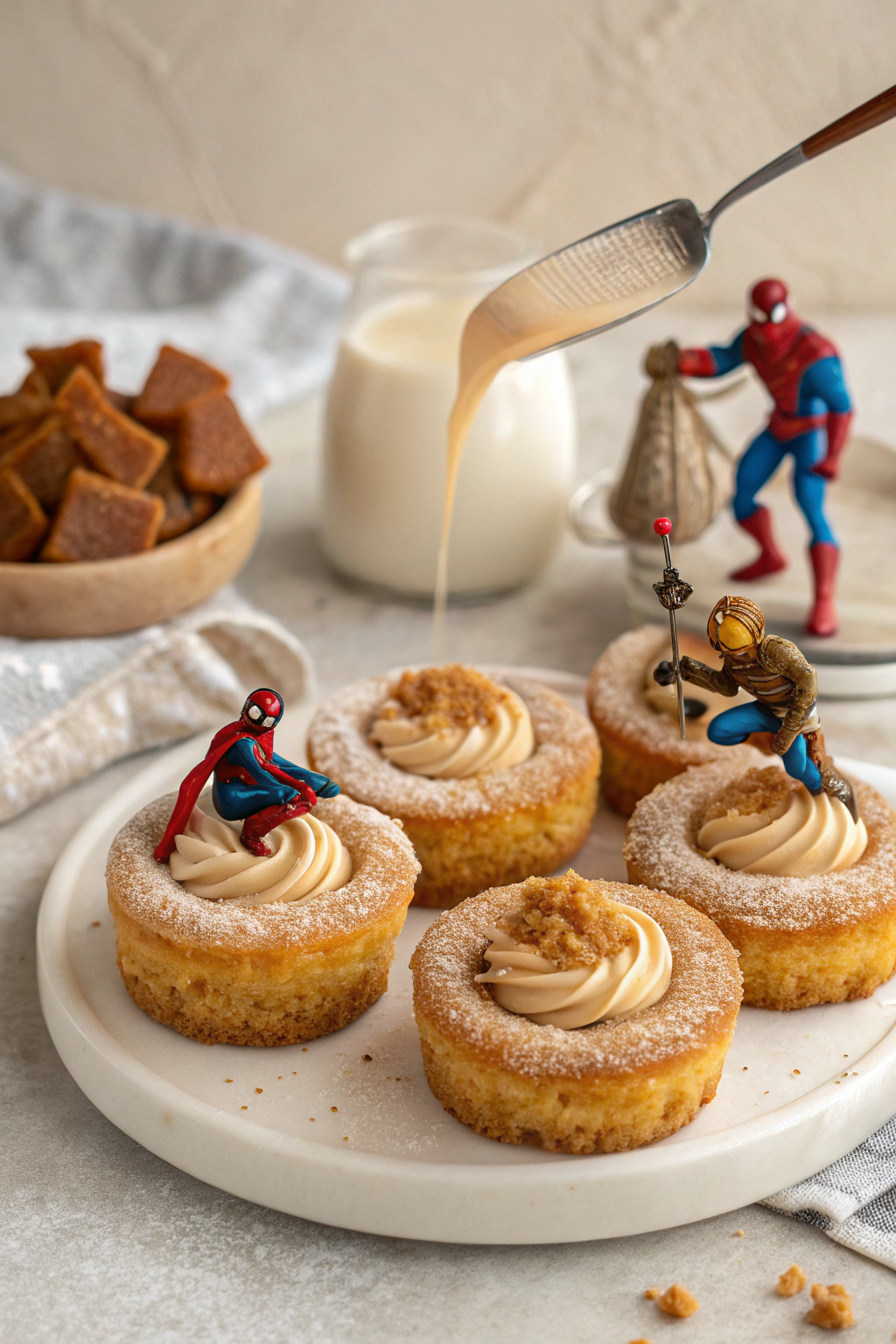 - Spider-Man: “Serve these with a drizzle of caramel or chocolate sauce for an extra web of flavor.”