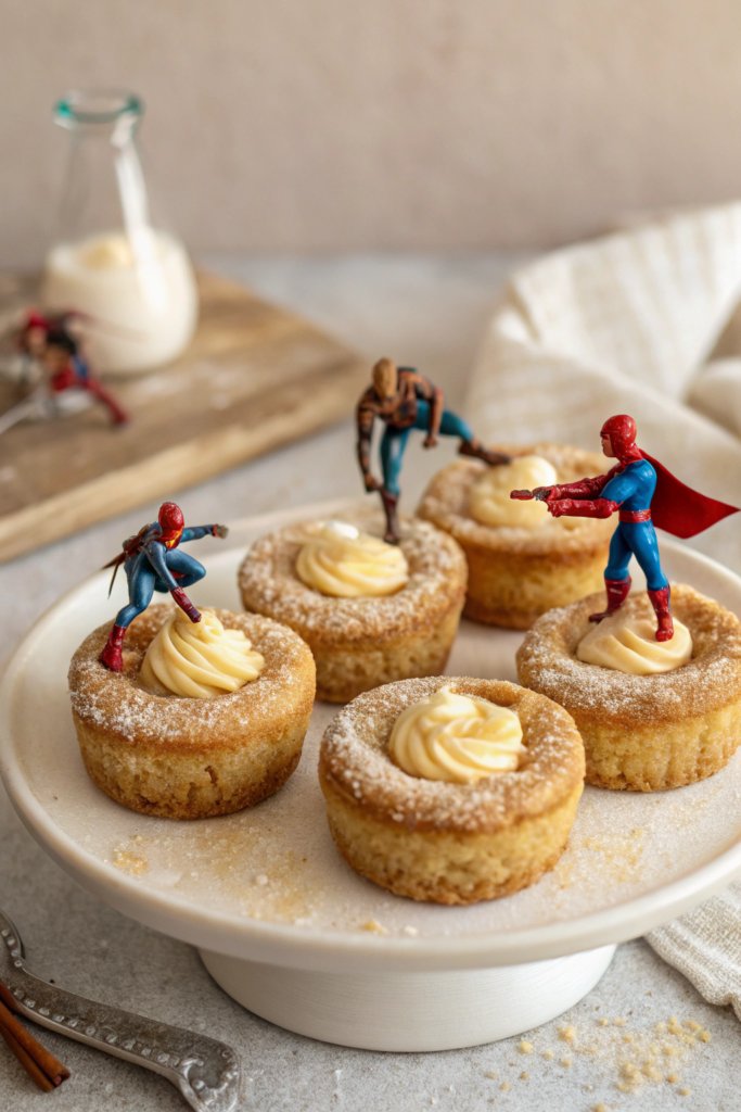 Wonder Woman: “Alright, heroes, today we’re tackling a dessert that’s as bold and dynamic as we are: Mini Churro Cheesecake Cookies! They’re small, powerful, and packed with sweet, cinnamon-y goodness.”