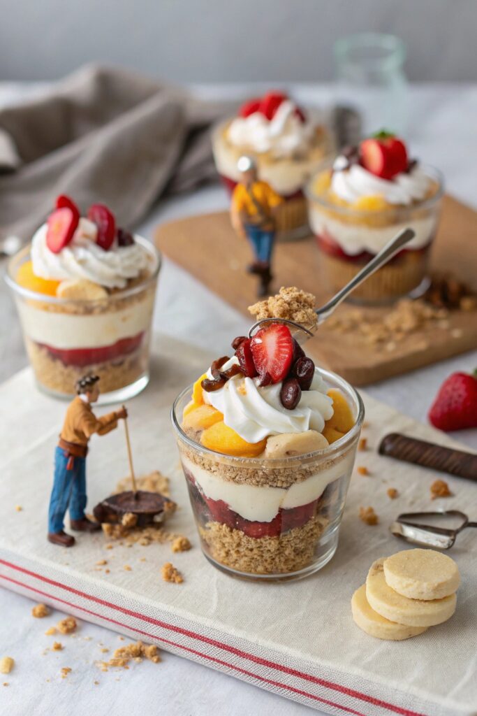 Jake: “Alright, team, today we’re making Mini No-Bake Banana Split Cakes! They’re layered, fruity, and absolutely no-bake—perfect for summer vibes or when you don’t feel like turning on the oven.”