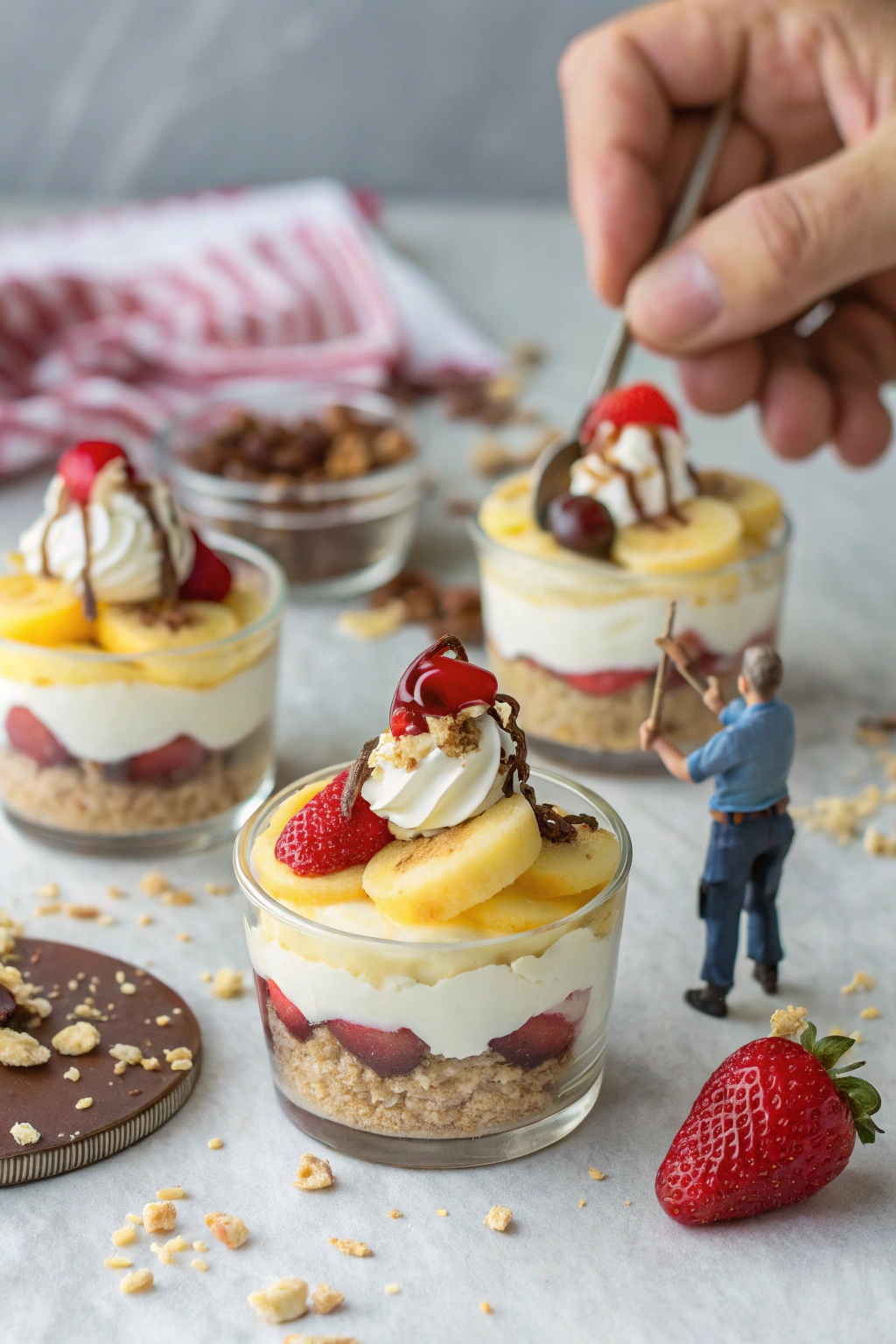 Mini No-Bake Banana Split Cake: A Tiny Slice of Tropical Bliss 🍌🍓🍍