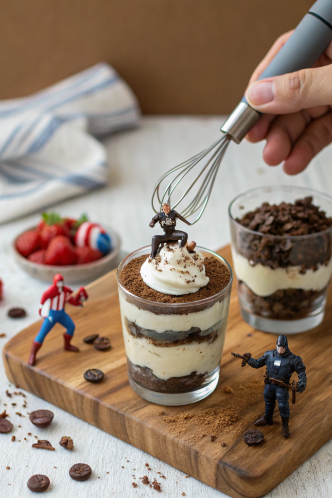 Iron Man: “Before we dive in, gather your mini dessert glasses or small shot glasses. Precision starts with the right tools.”