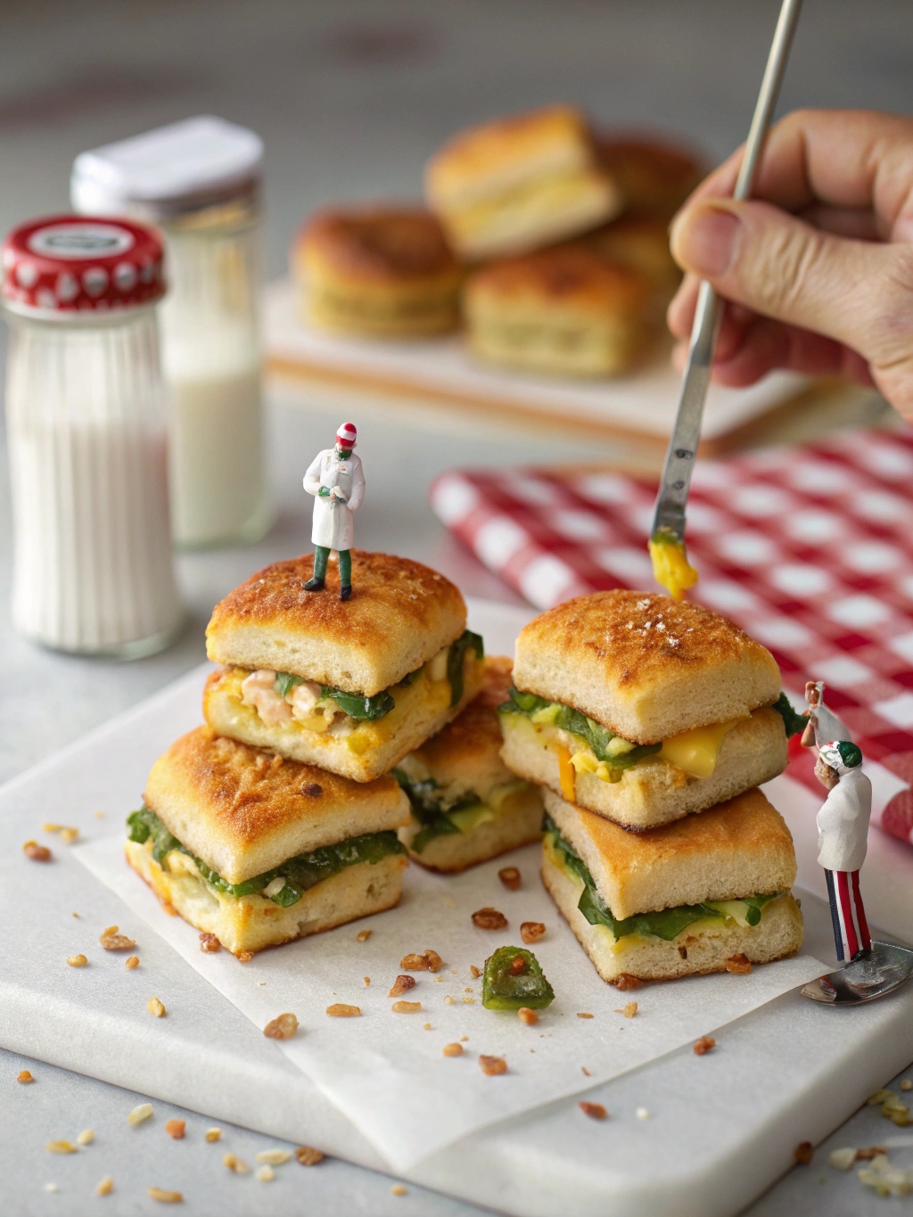 “Alright, fellas, today we’re taking the legendary Roasted Jalapeño Popper Grilled Cheese and making it mini. That’s right—tiny, crispy, spicy, cheesy sliders that’ll disappear faster than Mike’s dignity after that ghost pepper challenge.”