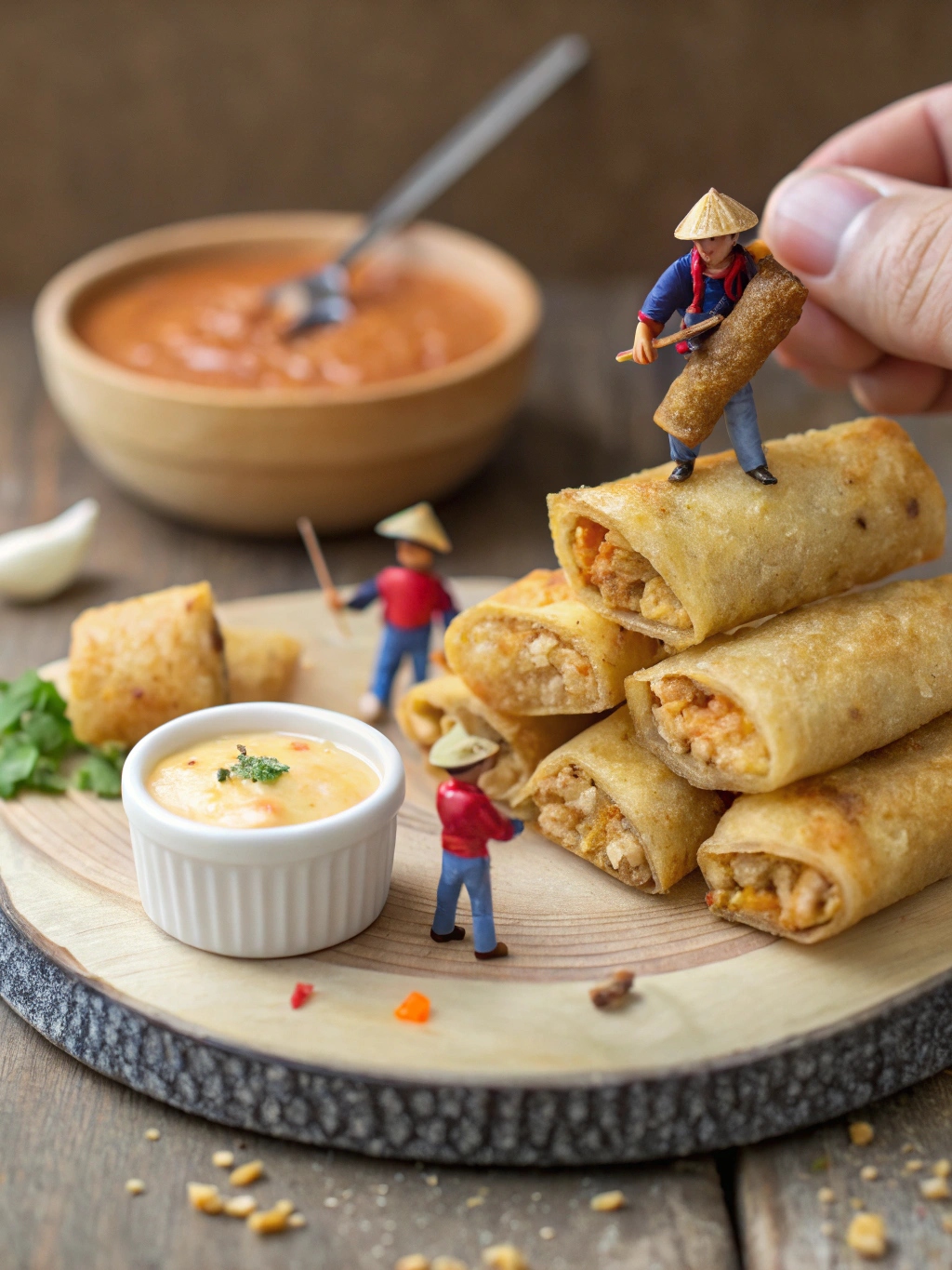 - Stir until smooth. Serve with warm mini egg rolls!