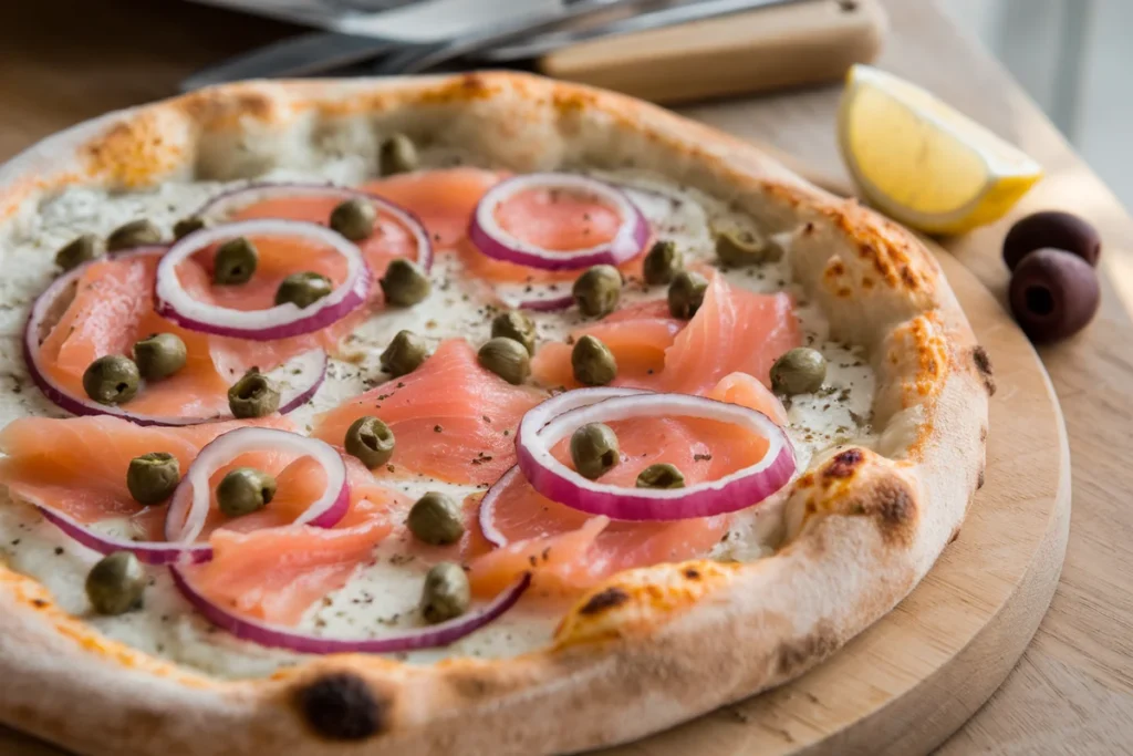 Give your pizza a gourmet twist with smoked salmon: