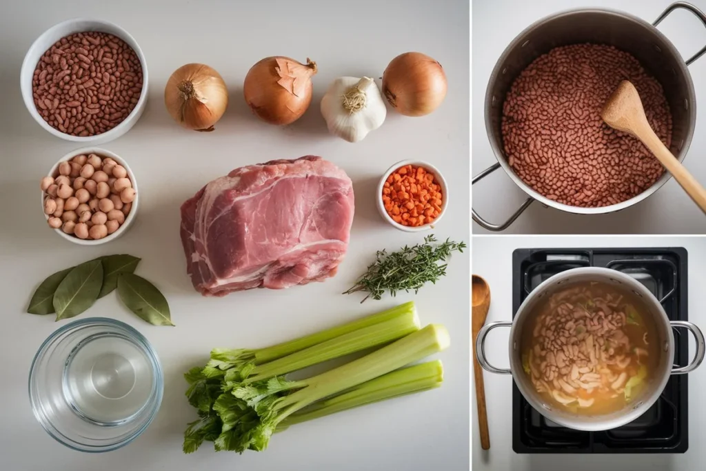 3. Add the beans and liquid: Drain the soaked peas and add them to the pot. Pour in enough water or broth (chicken or vegetable broth adds extra flavor) to cover the peas by about 1 inch. For a smoky flavor, add smoked ham hocks, bacon, or sausage.